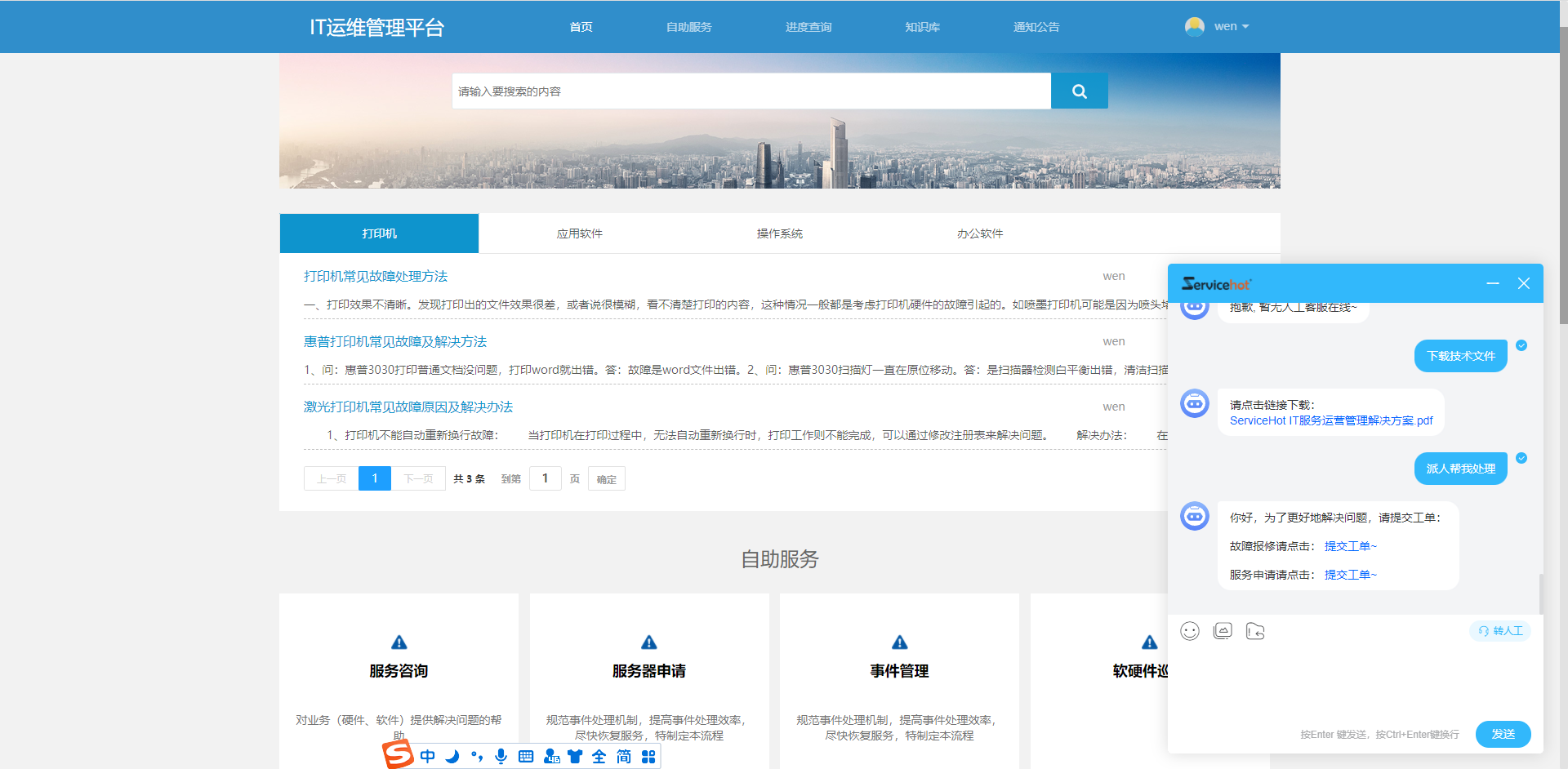 ServiceHot也率先接入了AI機器人,以人工智能為動力的ITSM將提供自助服務,實現(xiàn)在線溝通 — 及時溝通,智能分派、智能輔助、自動生成工單記錄,跟蹤服務全過程。