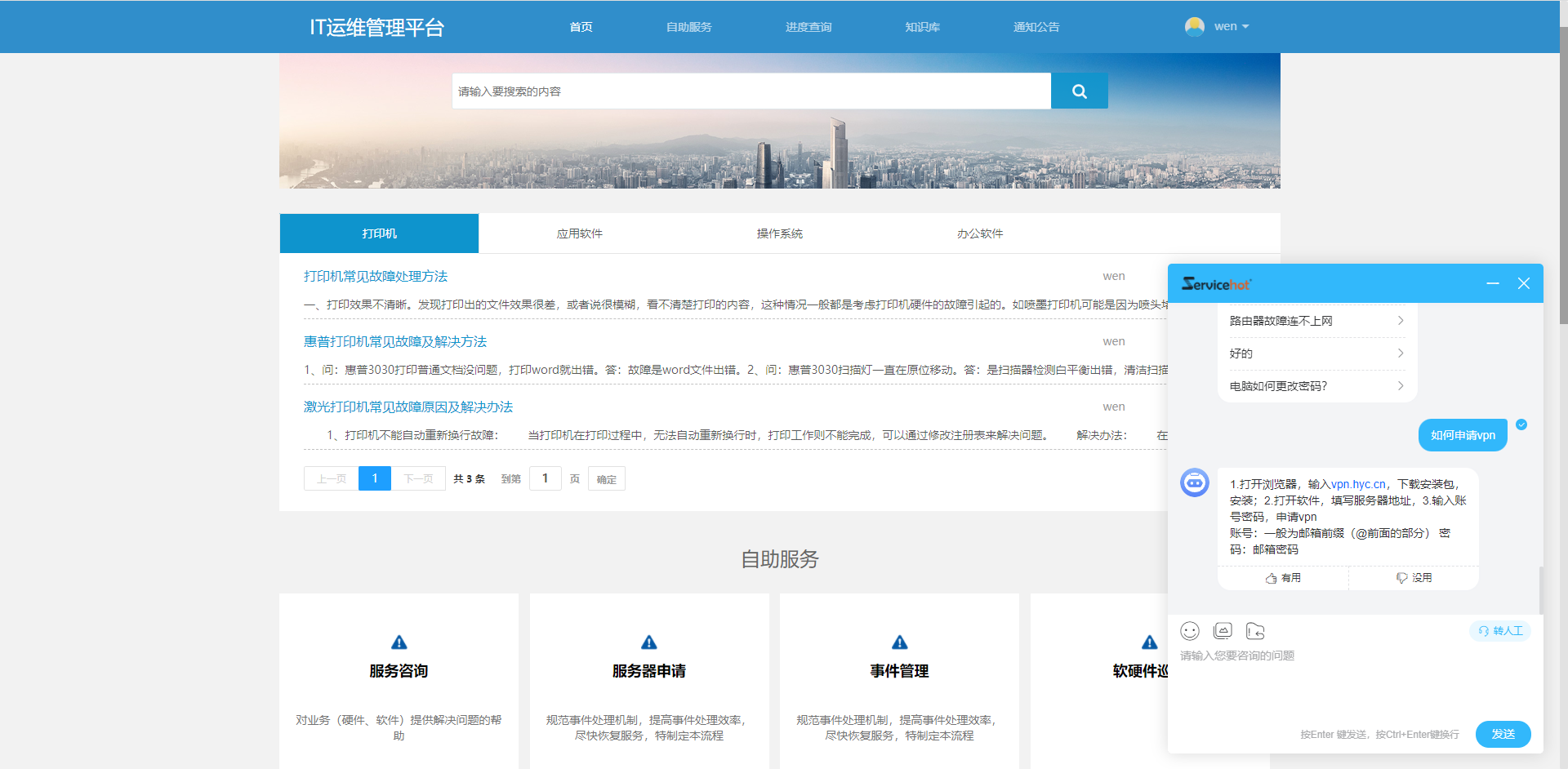 ServiceHot AI機器人的接入將重塑傳統(tǒng)服務臺,提供智能與自動的服務,實現(xiàn)上述AI為it服務管理帶來的益處,提供更加完善的it服務運營管理解決方案。