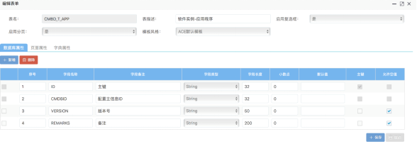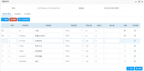 針對(duì)每個(gè)資產(chǎn)配置類別,流程管理中心通過(guò)圖形界面提供詳細(xì)的屬性設(shè)置,包括名稱、字段類型、默認(rèn)值、描述等,并可添加自定義屬性。整個(gè)定義無(wú)需任何編碼。同時(shí),還可以對(duì)不同分類的配置項(xiàng)定義不同的配置項(xiàng)編碼生成規(guī)則