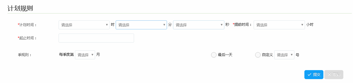 按季度:按季度是通過每個(gè)季度的第 N(1-4)月的“最后一天”或“自定義”號(hào)數(shù)定義定時(shí) 器觸發(fā)時(shí)間。