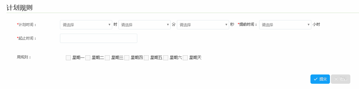 按周:配置觸發(fā)器在一周的七天時(shí)間觸發(fā)天數(shù)的時(shí)間點(diǎn),通過對周一、周二、周三、周四、 周五、周六、周天進(jìn)行預(yù)先定義觸發(fā)時(shí)間點(diǎn)。