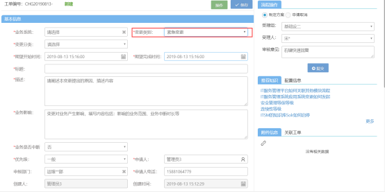 ? 對于日?;淖兏途o急的變更分別設(shè)置獨立的流程,變更信息影響CMDB
