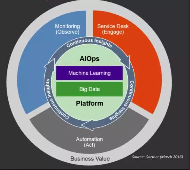AIOps將三個(gè)不同的IT專業(yè)結(jié)合在一起 — 服務(wù)管理、性能管理和自動(dòng)化 — 以實(shí)現(xiàn)持續(xù)洞察和改進(jìn)的目標(biāo)。在我們新的IT加速環(huán)境中,AIOps是一種識(shí)別策略,必須采用由大數(shù)據(jù)和機(jī)器學(xué)習(xí)支撐的新理念。