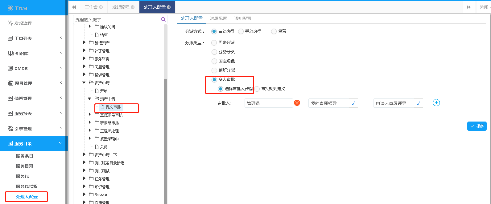 配置方法:我們需要到流程環(huán)節(jié)中去進(jìn)行處理人配置,在自動(dòng)執(zhí)行下方選擇‘多人審批’,首先‘選擇審批人步驟’,直屬領(lǐng)導(dǎo)可以直接勾選,其他人員可以點(diǎn)擊右側(cè)‘+’進(jìn)行添加。