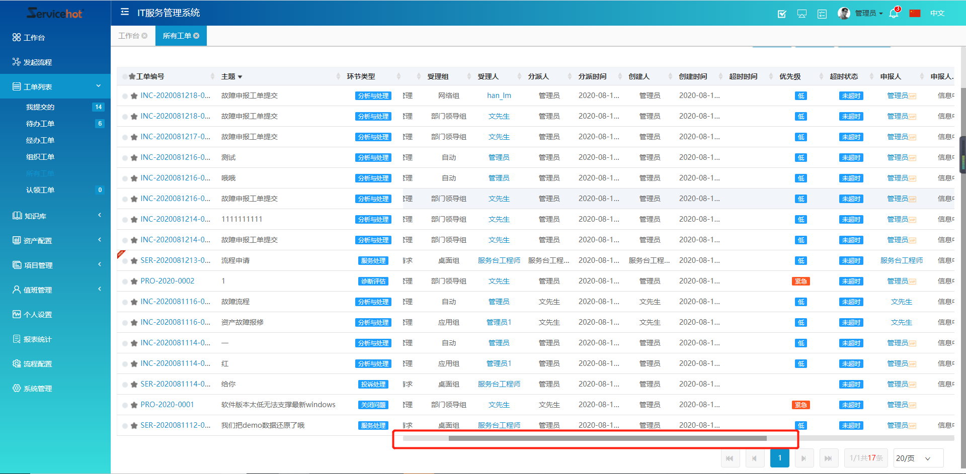 工單展示頁(yè)面增加滾動(dòng)條,系統(tǒng)鎖定工單編號(hào)、主體及環(huán)節(jié)類型,用戶可通過滾動(dòng)條查看每條工單的其他全部?jī)?nèi)容。