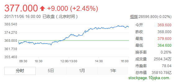 騰訊控股昨日股價(jià)再創(chuàng)新高,收盤時(shí)漲2.45,股價(jià)達(dá)377港元,市值則為3.58萬億港元。
