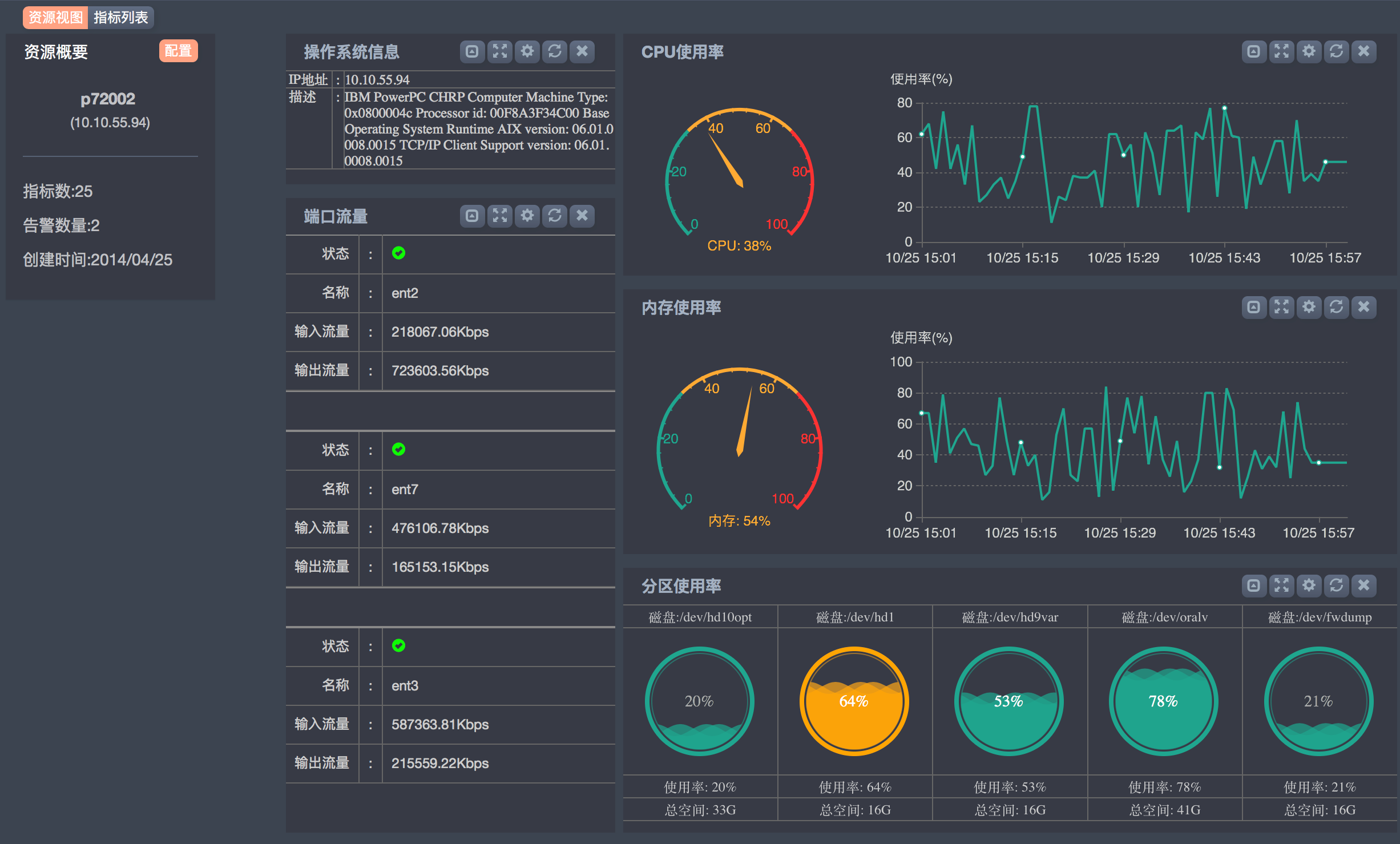 ? 物理資源狀態(tài)及使用情況(CPU、內(nèi)存、存儲、網(wǎng)卡流量)