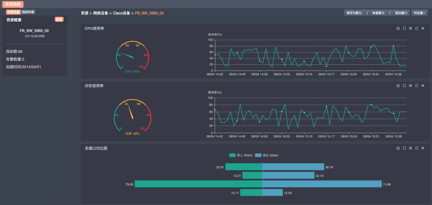 運(yùn)維監(jiān)控系統(tǒng) 對網(wǎng)絡(luò)設(shè)備狀態(tài)監(jiān)測主要通過SNMP方式為主,能夠監(jiān)控國內(nèi)外主流廠商的網(wǎng)絡(luò)設(shè)備,可以監(jiān)測的相關(guān)參數(shù)有:CPU使用率、內(nèi)存使用率、端口管理和運(yùn)行狀態(tài)以及流入流出量、流入和流出使用率、單播接收和發(fā)送包數(shù)量、網(wǎng)絡(luò)流量(平均流量和最大最小值等)和帶寬、網(wǎng)絡(luò)鏈路聯(lián)通性等。還可以通過Syslog、Trap協(xié)議被動接收網(wǎng)絡(luò)設(shè)備發(fā)送的告警,如安全設(shè)備一般都會主動將其受到攻擊的信息通過Trap向管理平臺發(fā)送。還可以通過ICMP協(xié)議檢測線路的性能。監(jiān)控系統(tǒng)對網(wǎng)絡(luò)設(shè)備狀態(tài)監(jiān)測和管理包括以下重要的指標(biāo):