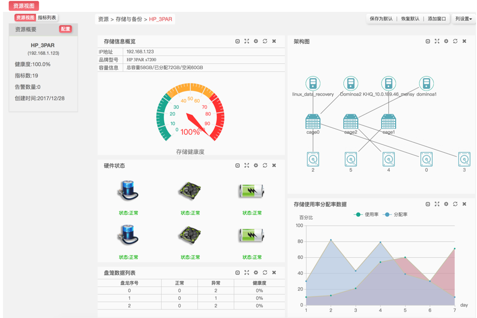 ? 支持存儲性能及磁盤、主機(jī)、盤籠之間的架構(gòu)圖展現(xiàn),如下圖: