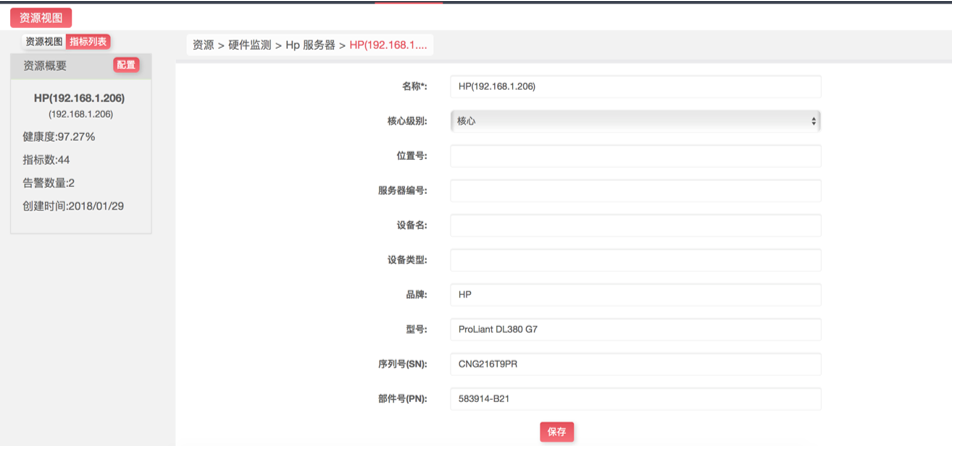 對于X86服務(wù)器,運(yùn)維監(jiān)控系統(tǒng)能夠自動采集到服務(wù)器的品牌、型號、SN、PN等資產(chǎn)配置信息,并且支持和CMDB對接,實(shí)現(xiàn)配置信息同步。