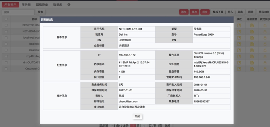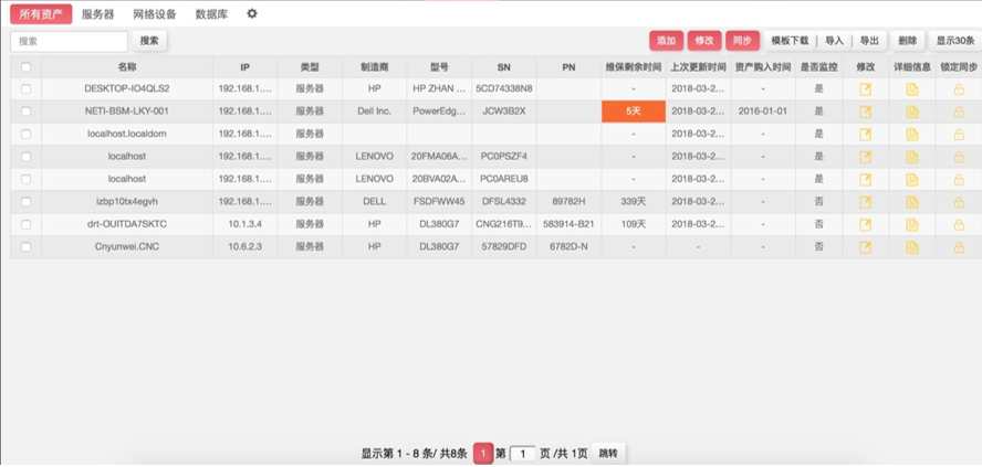 對于服務(wù)器硬件,系統(tǒng)可自動發(fā)現(xiàn)制造廠商、型號、SN、PN等關(guān)鍵信息,并且可以自動同步到相應(yīng)的資產(chǎn)記錄當(dāng)中;對于維保時間,可通過手動自定義維保時間,當(dāng)維保到期,出現(xiàn)高亮或者告警提示,代替資產(chǎn)管理人員維護(hù)資產(chǎn)生命周期。