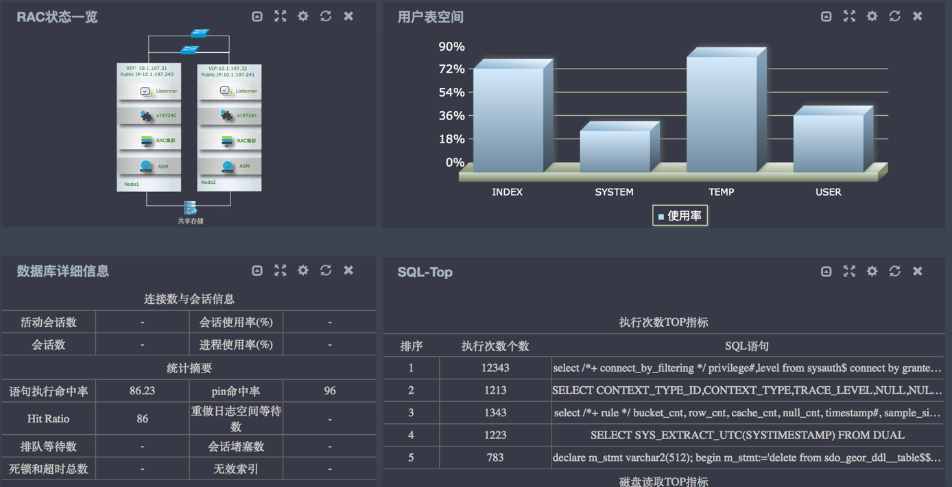 圖表:Oracle Rac 集群環(huán)境狀態(tài)一體化視圖