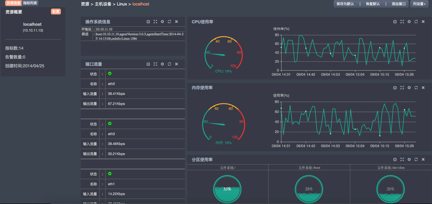 對各種操作系統(tǒng)(Windows、Linux、Solaris、HP-UX、AIX、中標(biāo)麒麟、浪潮天梭K1)基本性能指標(biāo)的監(jiān)測。如 CPU 性能相關(guān)參數(shù),系統(tǒng)邏輯及物理磁盤性能相關(guān)管理參數(shù),系統(tǒng)內(nèi)存性能相關(guān)管理參數(shù)。對基礎(chǔ)應(yīng)用服務(wù)監(jiān)測。可以監(jiān)測的指標(biāo)有:HTTP/HTTPS,SMTP/ POP3,F(xiàn)TP,DNS服務(wù),DHCP服務(wù),LDAP。