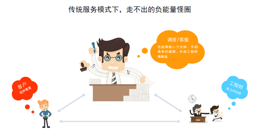 3、外派人員、現(xiàn)場(chǎng)服務(wù)人員難管理,服務(wù)管理成本增高卻不透明;